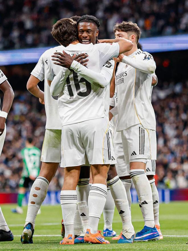 比赛结束,皇家马德里在主场5-1大胜皇家贝蒂斯!